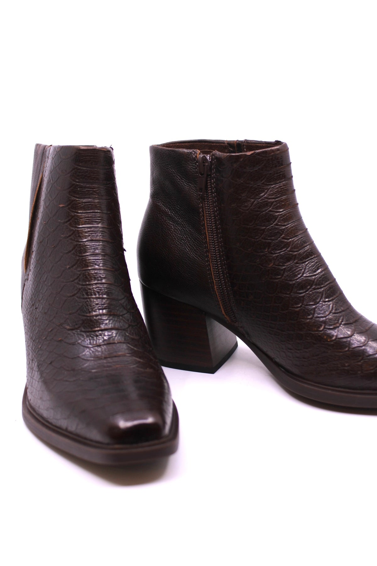 The Aiken Bootie by Børn is a bold ankle boot with signature comfort and craftsmanship. Made from Italian hand-finished embossed snake leather, it’s lined with breathable micro suede and built with a cushioned micro suede-covered footbed with extra foam for all-day wear. A high-traction, lightweight rubber outsole and leawood stacked wrapped heel provide both stability and style. Finished with Børn’s ¾ Opanka handcrafted construction, this bootie offers flexibility, durability, and standout texture in a versatile silhouette.