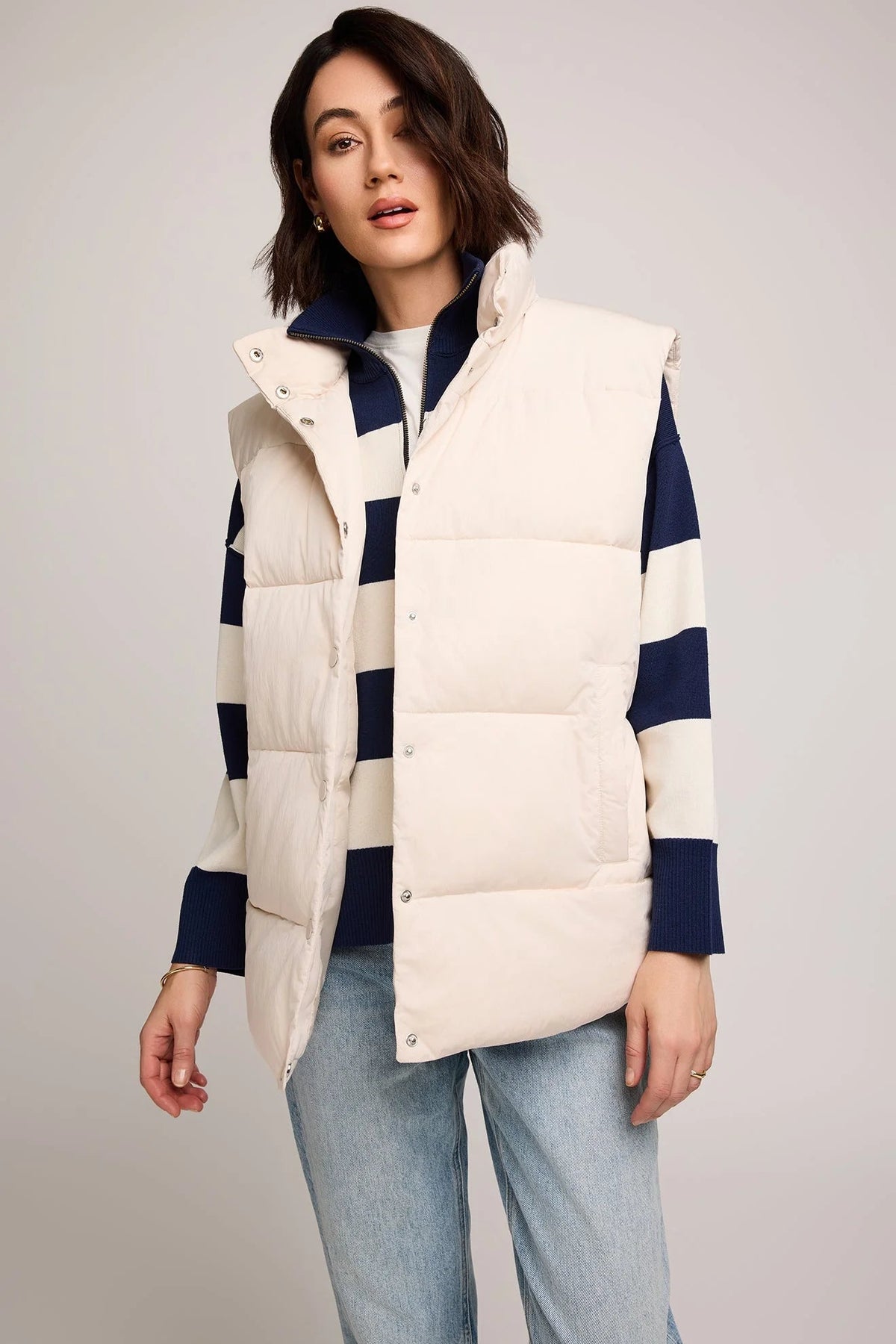 The Gentle Fawn Nora Vest in Cream is a versatile layering piece designed for cozy, everyday wear. Made from durable nylon fabric with the perfect amount of fill, this vest delivers lightweight warmth without the bulk. Featuring a front snap closure and welt pockets, it’s the ideal topper for fall layering or transitional weather.