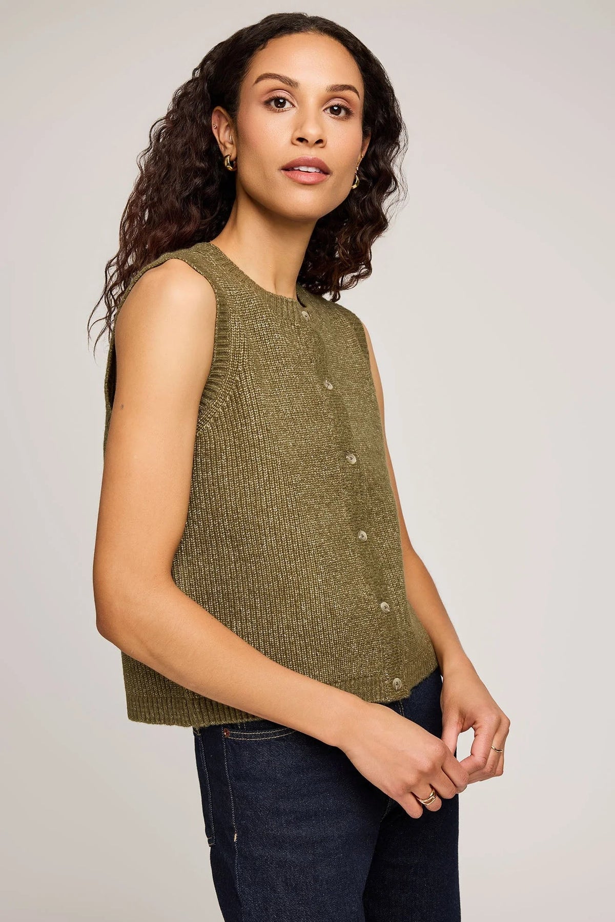 The Winnie Vest by Gentle Fawn is a versatile knit that can be worn solo or layered. Made of soft yarn in a half cardigan stitch, it features a classic crew neckline and a button-front closure for timeless style. In the Vine colorway, it’s a chic piece to pair with denim, trousers, or layered over a fitted tee for an easy transitional look.