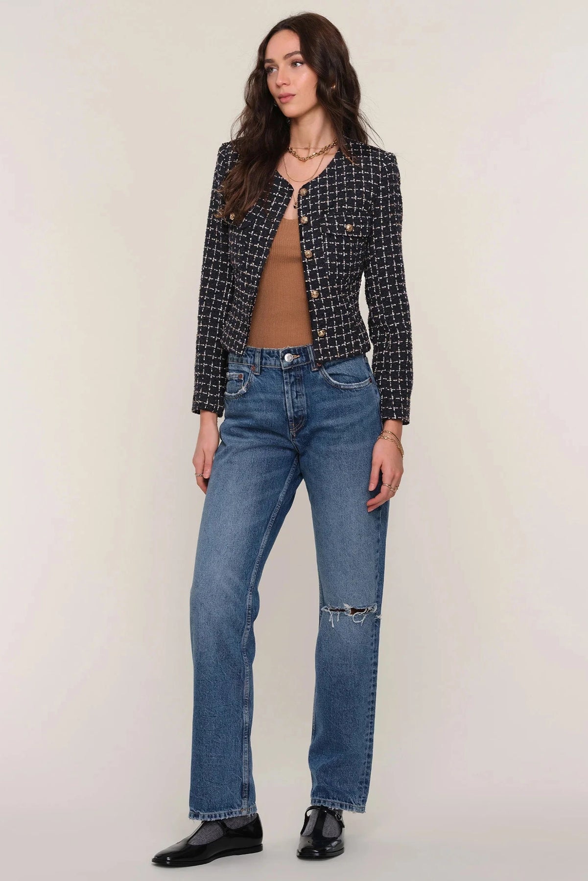 The Berri Blazer by Heartloom is this season’s update to the brand’s best-selling style. Designed with a modern crew neckline and a slim, tailored fit, it offers a sleek alternative to classic blazer silhouettes. The novelty button details add a touch of polish and personality, making this a versatile piece to dress up denim, layer over dresses, or pair with trousers for a chic set. In a timeless Navy hue, it’s the perfect wear-anywhere layer.